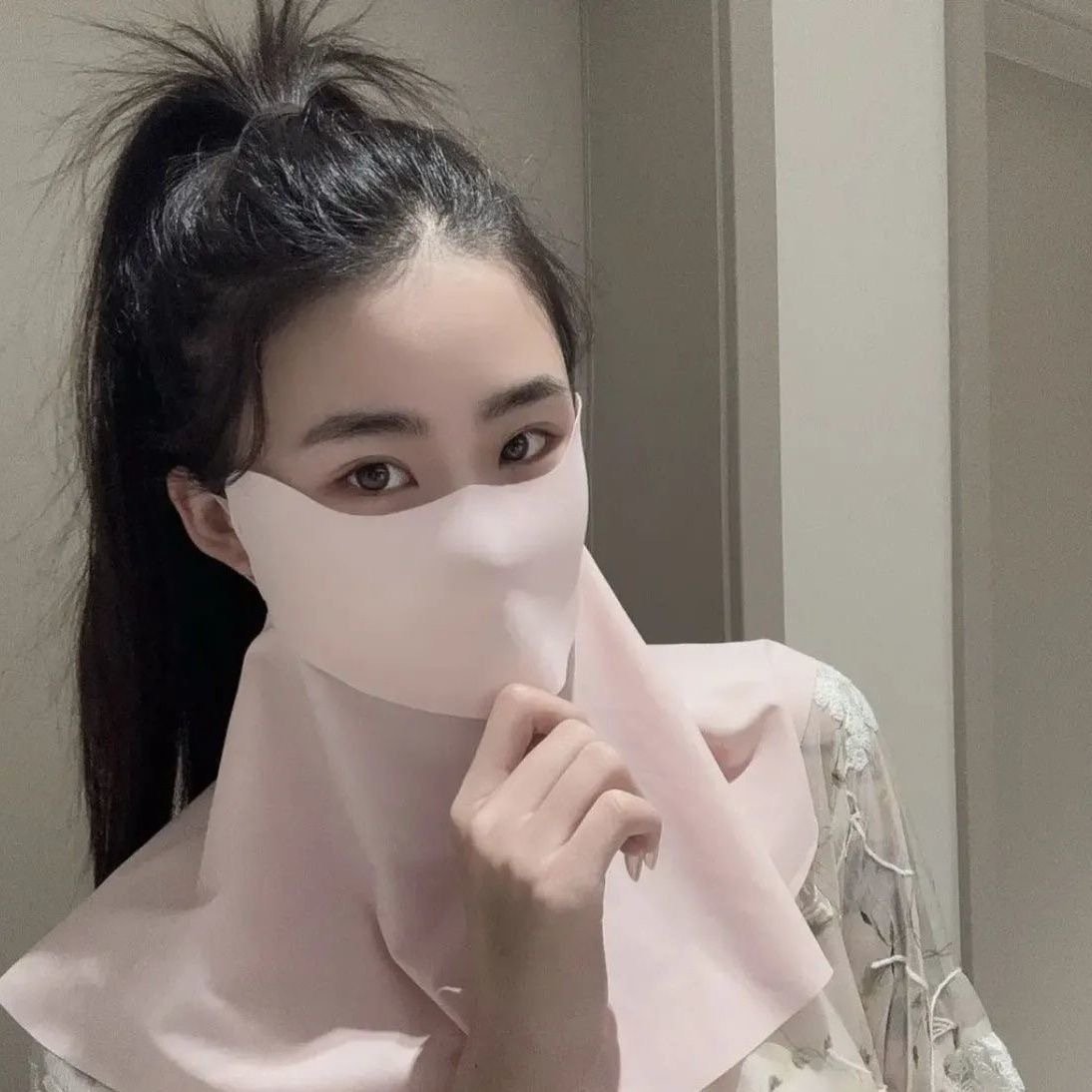 무봉제 아이스 실크 자외선 차단 마스크|눈가·얼굴 라인 UV 보호|통기성 3D 여름 야외 귀걸이형 마스크 (Copy)